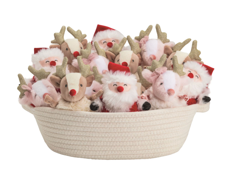 Faux fur pom plush pal with weighted seat. Cutest little pom pom buddies! Perfect size for little hands to hold onto their new holiday bestie!