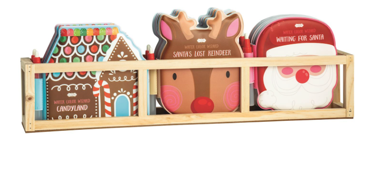 Water activated color changing book comes with water pen. Comes in wooden display crate.