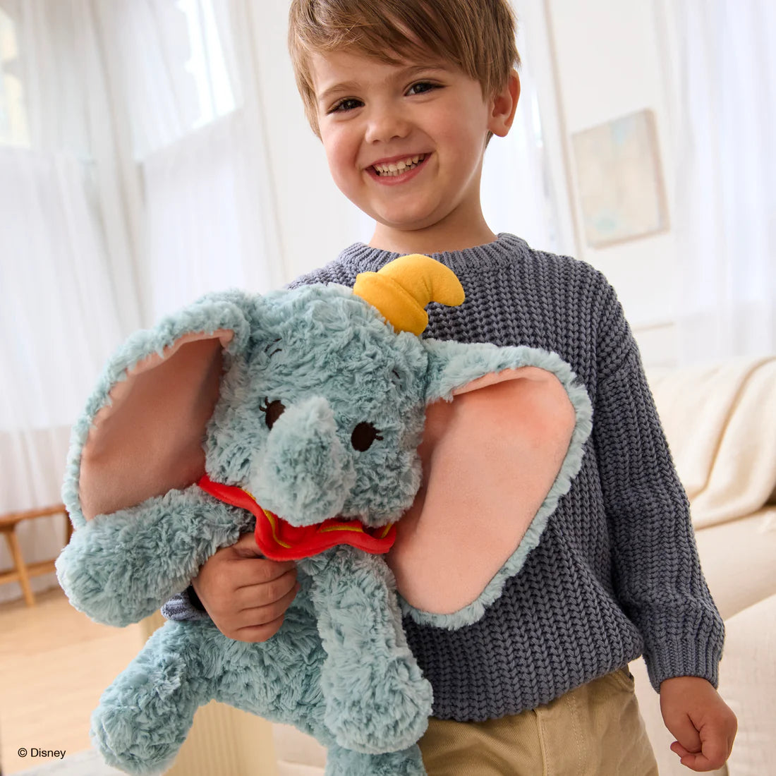 Disney’s Dumbo is soaring to playtime! This iconic baby elephant has been crafted in our signature Cozys Collection style, bringing the magic of the classic Disney film to one of our most-loved plush lines. Cozys are cuddly companions made from soft, textured fabrics that feel as familiar as hugging an old friend! At 10 inches long, this irresistibly cute Dumbo plush features film-accurate details fans will love, including floppy, oversized ears so big they look like he could just fly away with them! Dumbo comes dressed in his tiny yellow circus clown hat and velvety-soft red clown collar, which features gold embroidered accents. Like all Cozys animals, this elephant stuffed animal has soft swirls of high-pile plush and floppy limbs built for hugging. Dumbo was made for snuggle sessions!