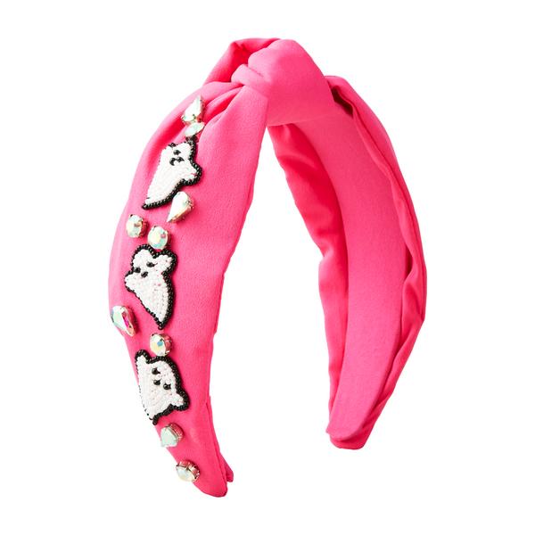 These headbands are meticulously crafted with intricate rhinestone and seed bead embroidery, creating a mesmerizing design that catches the light beautifully. Made from high-quality cotton, it is not only stylish but also comfortable to wear. The headband features a top knot detail, adding a trendy and fashionable element to its overall look. Whether you're attending a special event or simply want to elevate your everyday style, these cute Halloween headbands are the perfect choice!