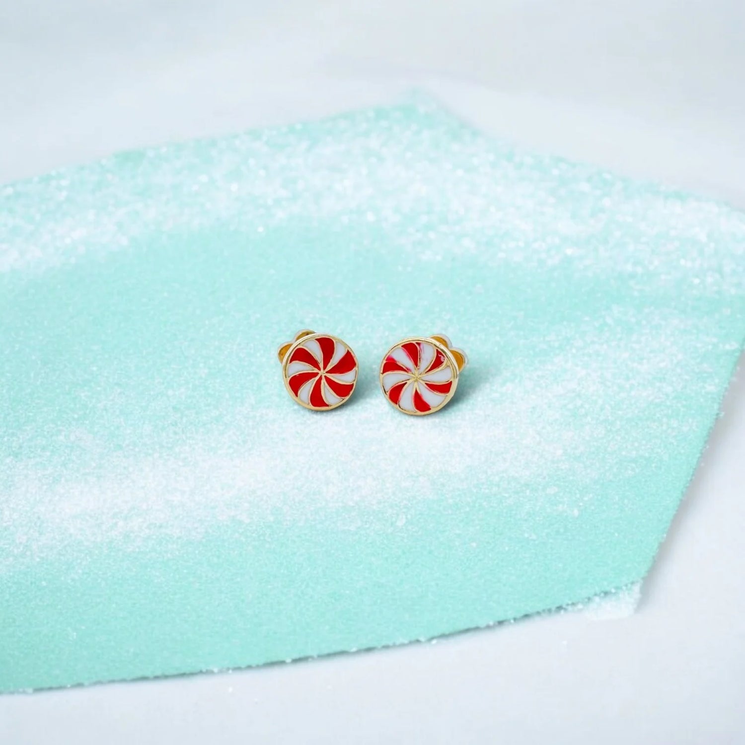 Add a touch of holiday cheer with these Peppermint Tiny Stud Earrings. (Satisfy your sweet tooth!) Featuring cute peppermints and a flat back, these hypoallergenic earrings are perfect for sensitive ears. Plus, the screw-on design makes them easy to wear and secure. (No more lost earrings!) 14K Gold Plated for a touch of luxury.