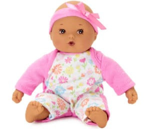 Little Cuties by Madame Alexander is great for those occasions where a child’s full-size baby needs to stay at home. Take baby on visits to grandparents, in the car, or to the store! Soft, cuddly, and sweet, our 8” baby teaches kids to love, nurture and imagine. This doll has a soft fabric body with molded head and limbs, ready for cuddling. Her beautiful face has delicate features with bright painted eyes. The doll wears a removable printed jersey knit outfit with a headband.
