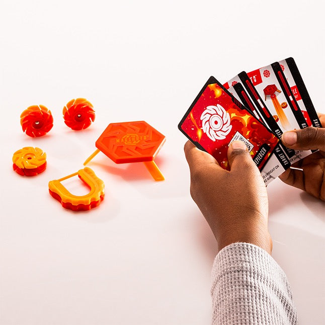 Mad, rad, magnetic action! Load one of the Mag-Pods into the shooter, pull it back with just your finger, aim, and launch. From there, endless trick-shot possibilities explode into action. Take on the challenge cards. Invent your own insane stunts. Slide, flip, and fly into gravity-defying action. But, it's not a trick until you hear it click! Magshuto. Become a trick shot master!