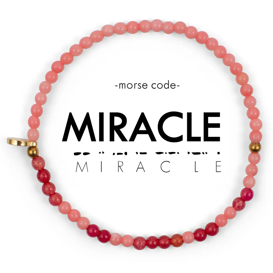 Make a statement with the new dainty 3mm Morse Code bracelet. Vibrant and fun colors bring a unique twist to the best selling word, Miracle. Show your unique style with this dainty stone bracelet!