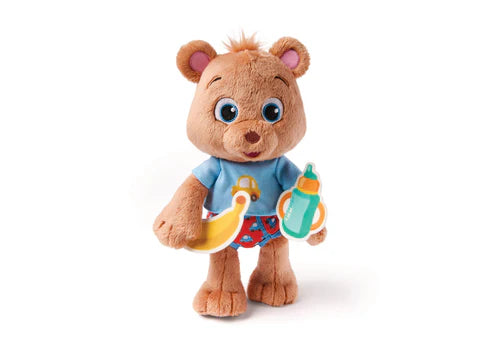- Teach littles as they help Bean change his diaper, wipe with play toilet paper, & use felt accessories like a banana, sippy cup & soap as they learn about daily routines through play