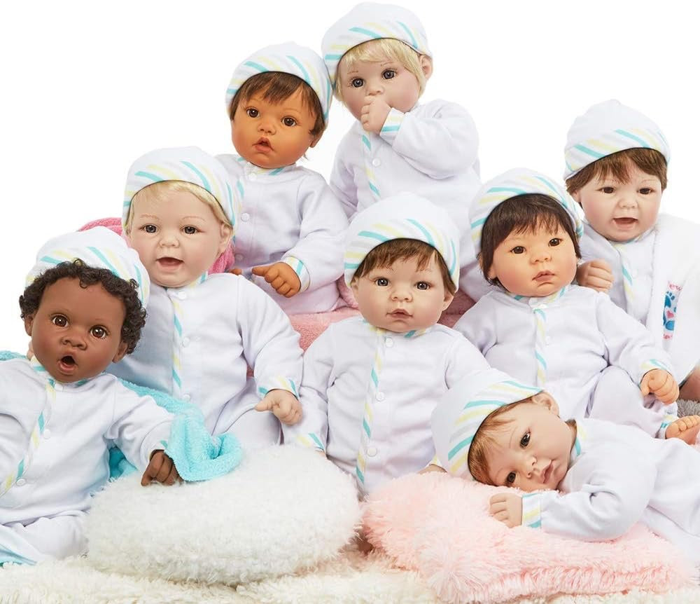 Designed to look and feel like a real baby, Munchkin has a light skin tone, strawberry blonde hair and blue eyes. Our Newborn Nursery dolls are 19” and feel so real, thanks to a soft, weighted fabric body, molded head and limbs, and wispy hair. They feature beautiful classic Lee Middleton sculpts. Encouraging nurturing play, this is the perfect baby doll for your child to pretend being a little parent! Ages 3+