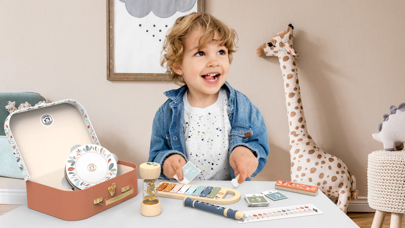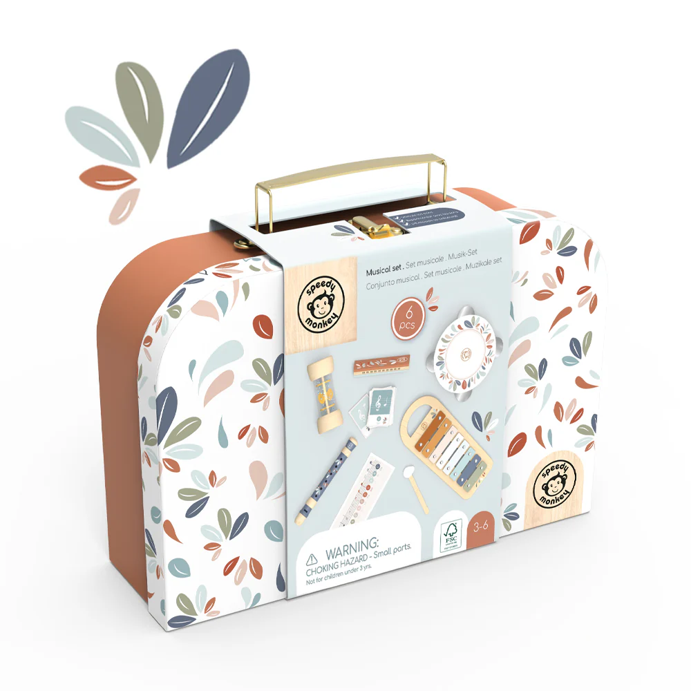 Because music ignites all areas of child development such as creativity and stimulates senses, this suitcase includes 5 musical instruments: The xylophone with eight colorful metal keys, the tambourine will produce a fun and soft sound, the wooden rainmaker that recreates the soft sound of rainfall when the beads cascade while turning the instrument, the colorful recorder with non-toxic and tasteless paint designed for beginners, the harmonica will certainly delight youngsters as no experience is required.