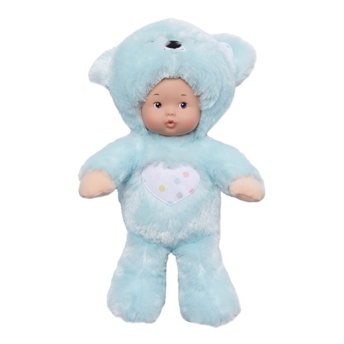 Our Peekaboos® Koala is the sweetest, snuggliest baby in plush - perfect for playing peek-a-boo with your little one! This 12-inch tall baby features a soft fabric body and a soft vinyl head that's perfect for little hands to grasp. Dressed in a light blue plush koala outfit with a peek-a-boo hood and a soft heart applique on the belly, this baby is as cute as can be. With a light skin tone, painted blue eyes, and a sweet expression, your child will fall in love with their new friend. Crafted of baby-safe materials and easy to clean, this baby doll is perfect for newborns and toddlers. It satisfies their need to nurture and helps develop their motor skills with the peek-a-boo hood and soft body. And with quality craftsmanship that demonstrates "love is in the details," you can rest assured that this doll is made to last. It's also washable for easy maintenance.