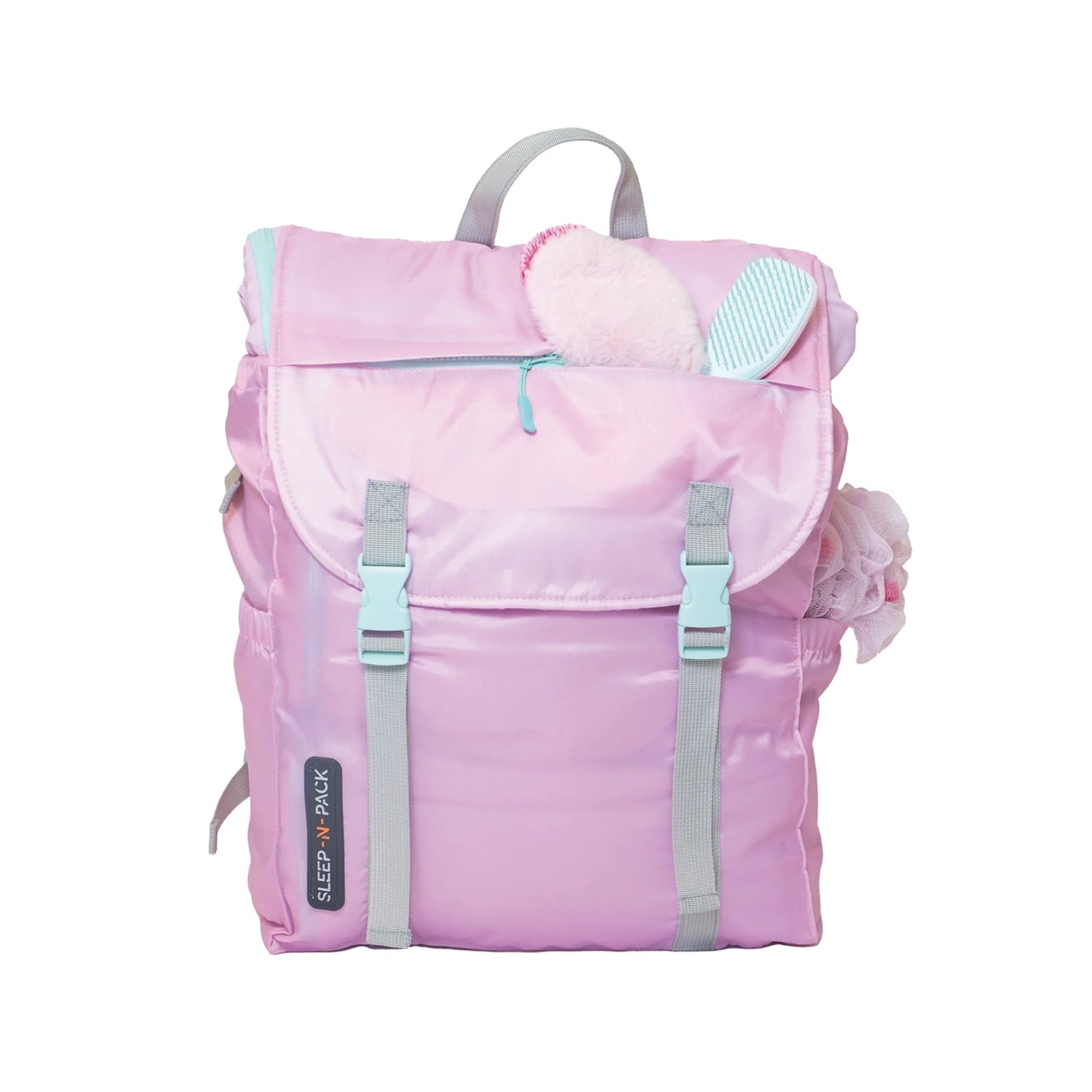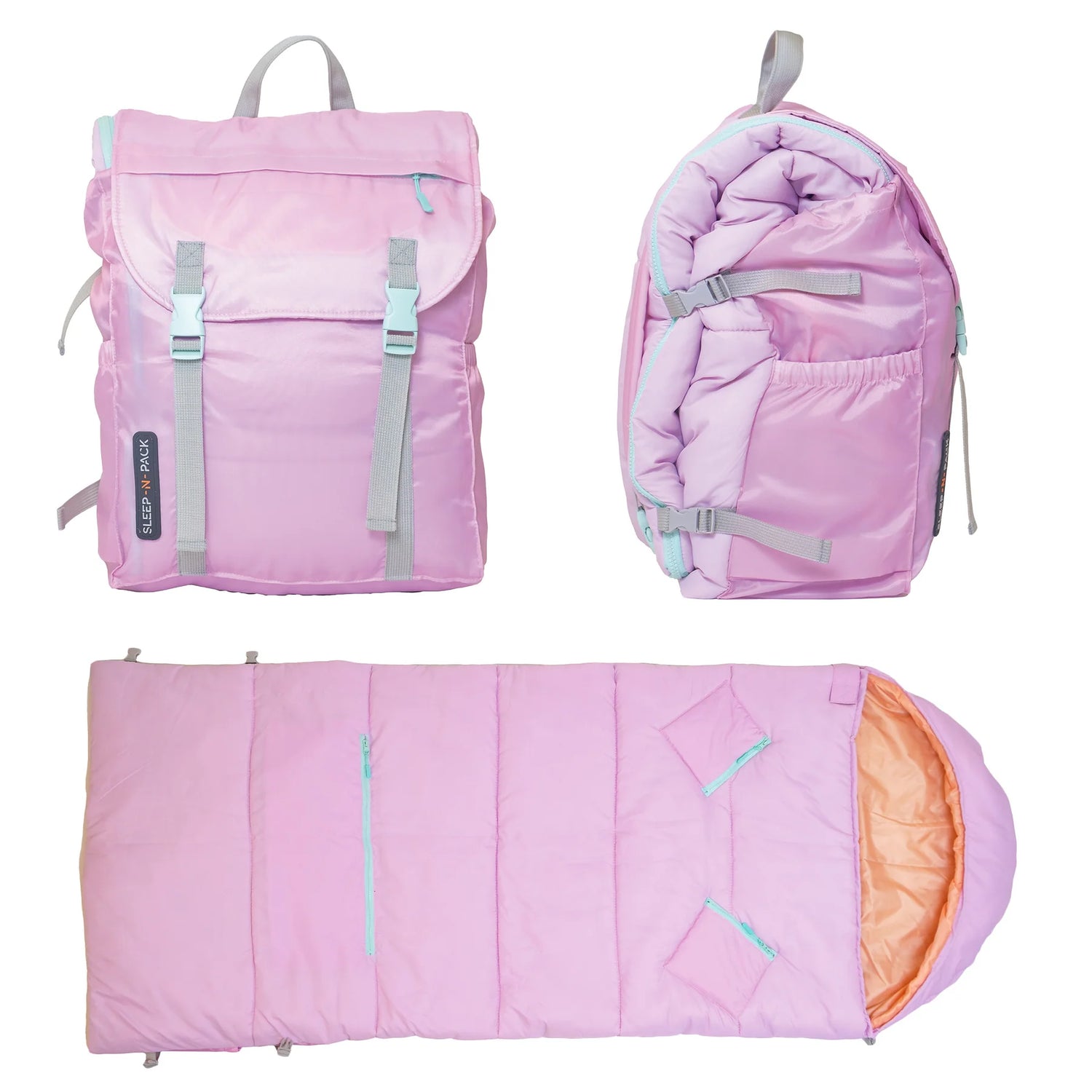 Mimish Sleep-N-Pack Big Kid Size | Pink Pirouette The Must-Have Sleep-N-Pack for Summer Camp, Sleepovers & Cozy Nights In! Get ready for the ultimate sleepover and summer camp essential with the Pink Pirouette Sleep-N-Pack! Designed with a soft and stylish Pink Pirouette shell, a smooth Peach Parfait liner, and Seafoam buckles and zippers, this patented 2-in-1 sleeping bag and backpack is the perfect companion for camp adventures, overnight stays, and fun-filled living room campouts.