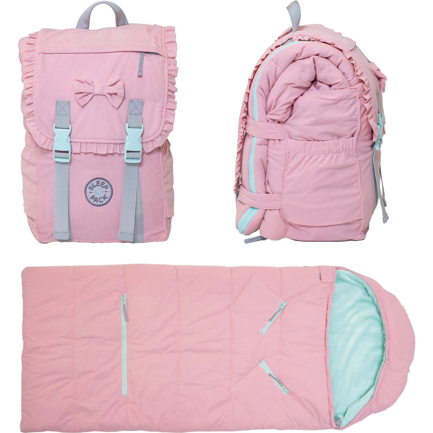 Mimish Sleep-N-Pack Little Kid Size | Bows & Ruffles Cotton Candy Pink Corduroy The Ultimate Sleepover Must-Have Now in Trendy Corduroy! Introducing the Mimish Sleep-N-Pack in Soft Fine-Wale Corduroy, part of our all-new Bows & Ruffles Collection! Designed for indoor use only, this patented 2-in-1 sleeping bag and backpack is perfect for sleepovers, travel, and cozy nights away from home. Featuring plush, fine-wale corduroy fabric and adorable ruffle details, this stylish yet practical design is soft, comfortable, and fashion-forward.